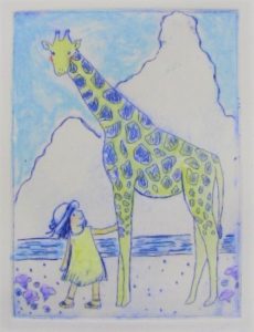摺った後も、透明水彩でキリンと女の子に手彩色し、