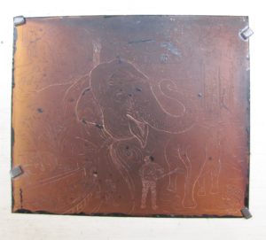 腐蝕が終わって、塩化第二鉄から出したばかりの版の様子