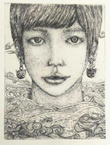 女性の顔を3枚横に並べて額装したものを出品しました。